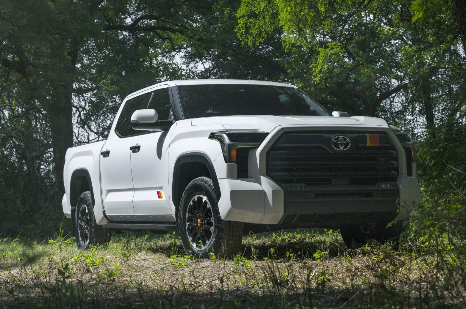 TRD Rally Package Available in limited quantities exclusively on the Tundra CrewMax SR 4x4, the TRD Rally Package amps up your truck like never before. Inside, you'll find a 14" multimedia screen and upgraded SofTex seats. And it has everything you need to go offroad in a big way, like the multi terrain monitor, all-terrain tires with 18-inch wheels and rear locking differential. |